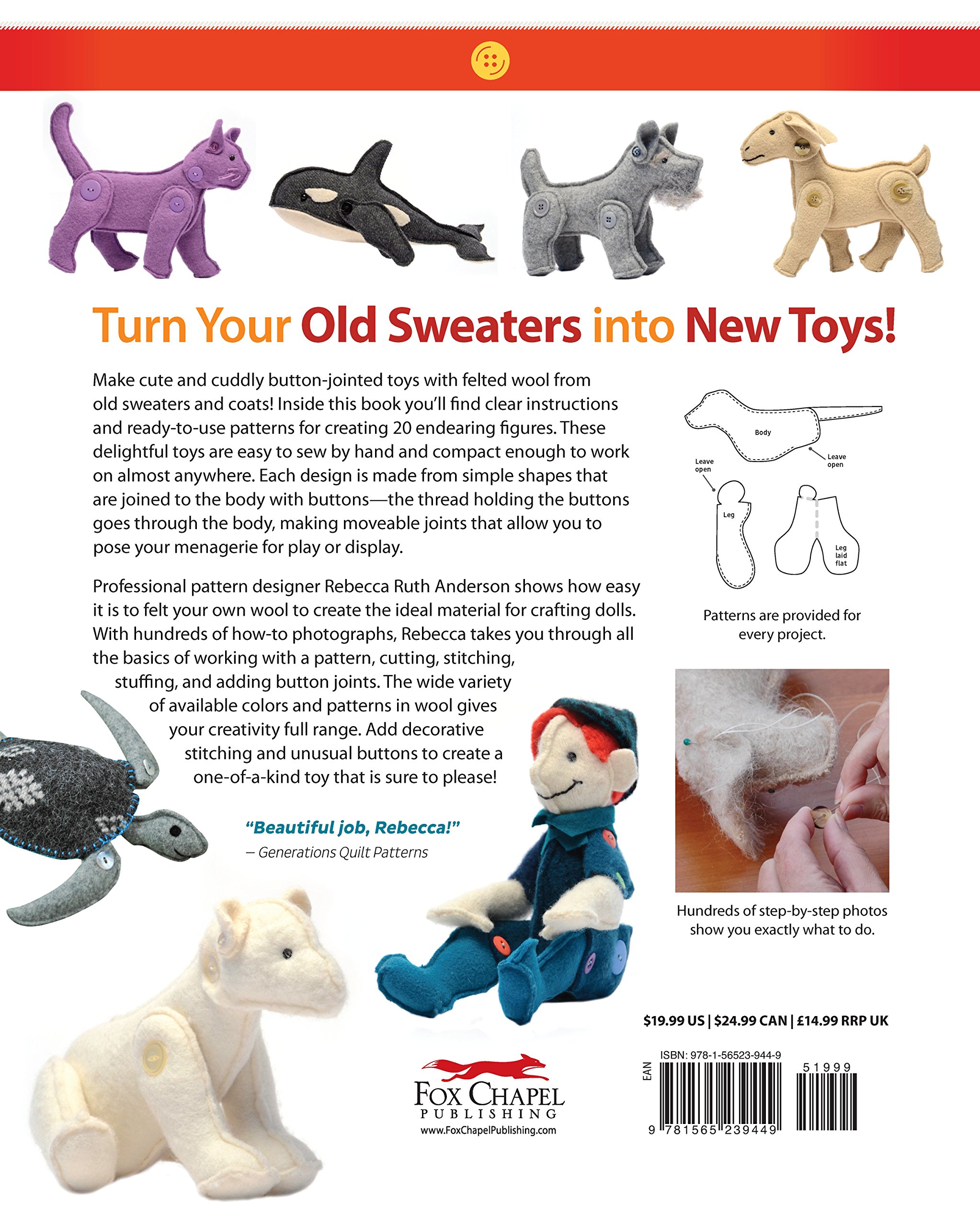 Making Adorable Button Jointed Stuffed Animals 20 Step By Step Patterns To Create Posable Arms And Legs On Toys Made With Recycled Wool Fox Chapel Publishing Cute Beginner Friendly Figures To Craft Amazon Co Uk Rebecca Anderson